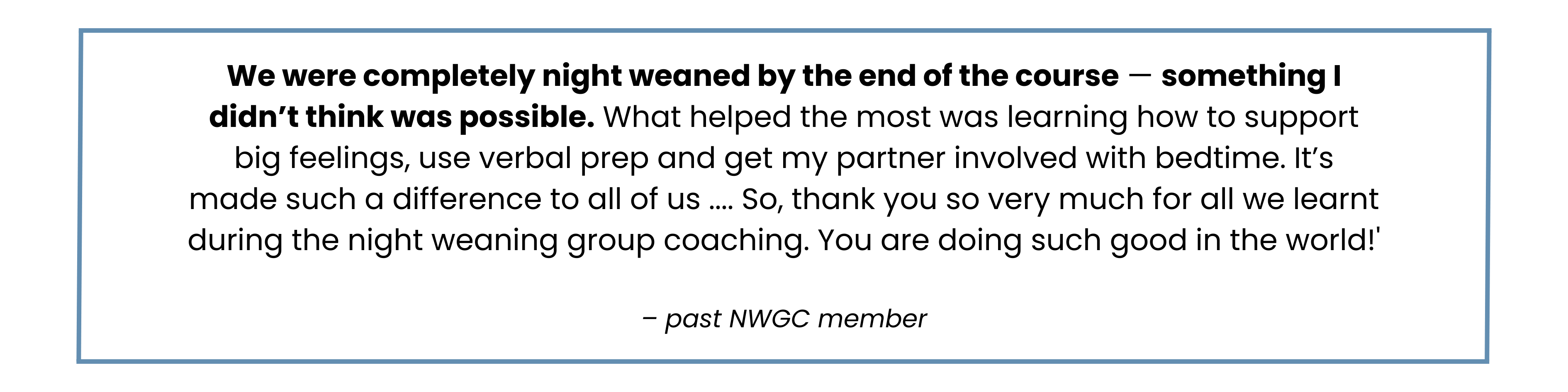 Night feeds are super normal and expected within the first 12 months (and beyond!), with night weaning tending to get easier the older kids are which is why this course is open for kids 12 months plus (no upper age limit!).