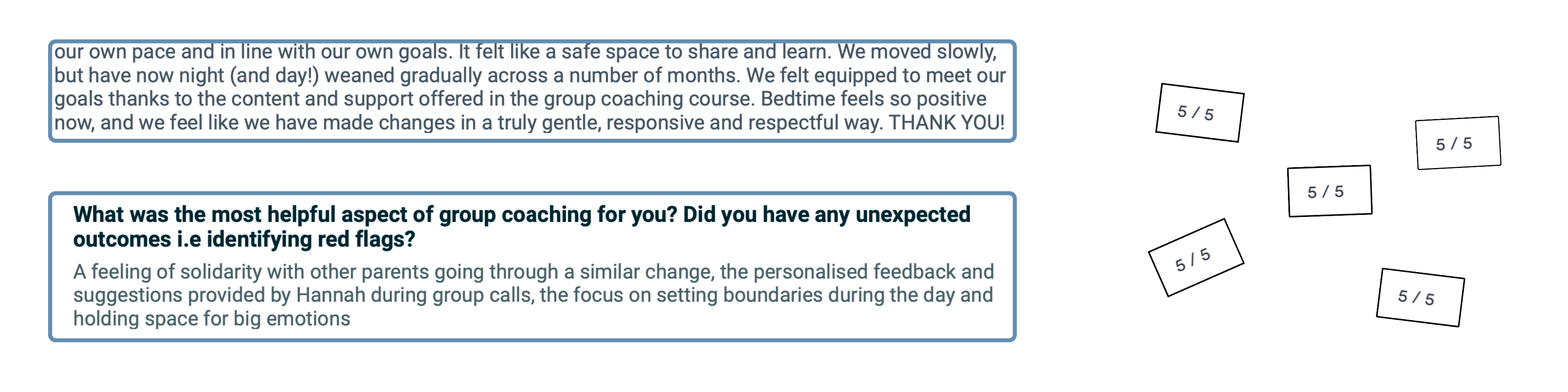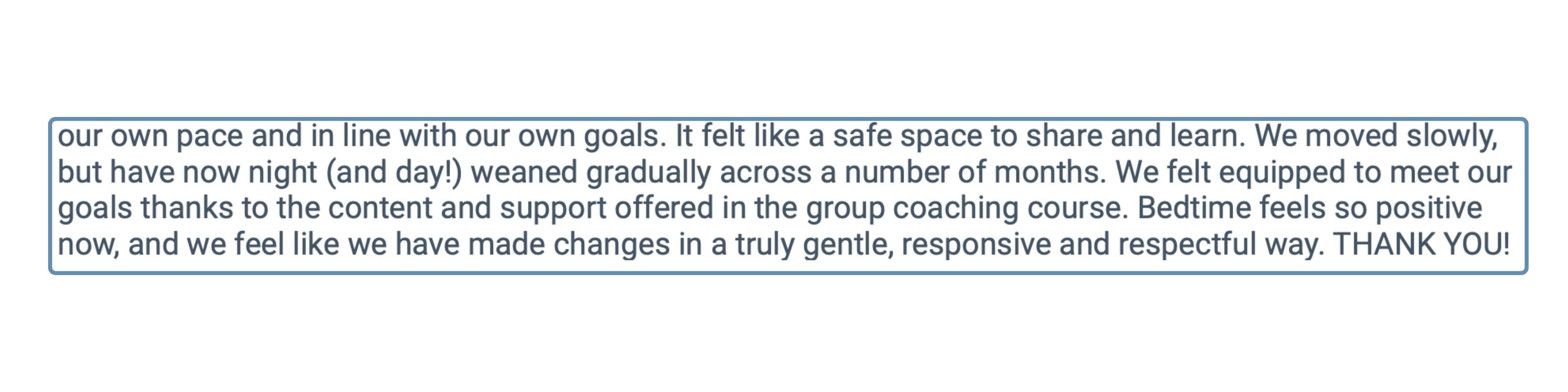 This is totally your ball game! Everyone is going to come into this group coaching with different goals, and that is the beauty of the content. You can shift as many feeds as you want, when you want. Only want to not feed to sleep but happy to feed every other wake at night (or vice versa)? Great! Want to fully night wean? Let's do it.